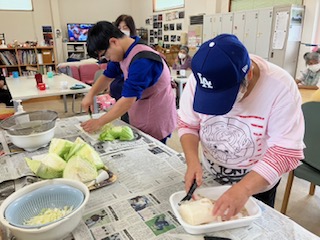 包丁を使う際には、職員が見守りながら慎重に進めていきます🎶